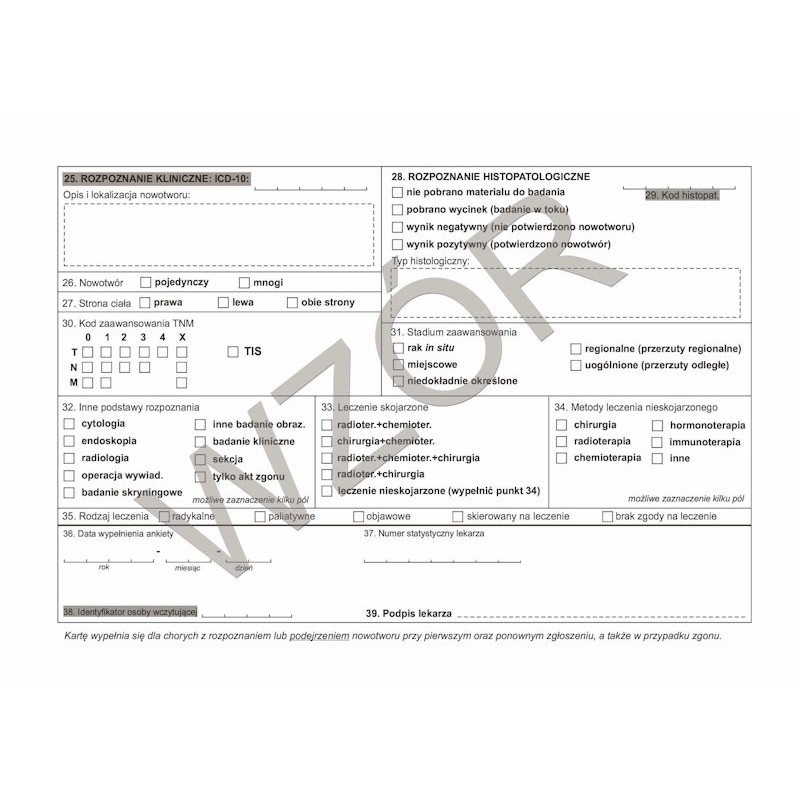 Karta zgłoszenia nowotworu złośliwego D17 - A5 dwustronna, bloczek 100 kart